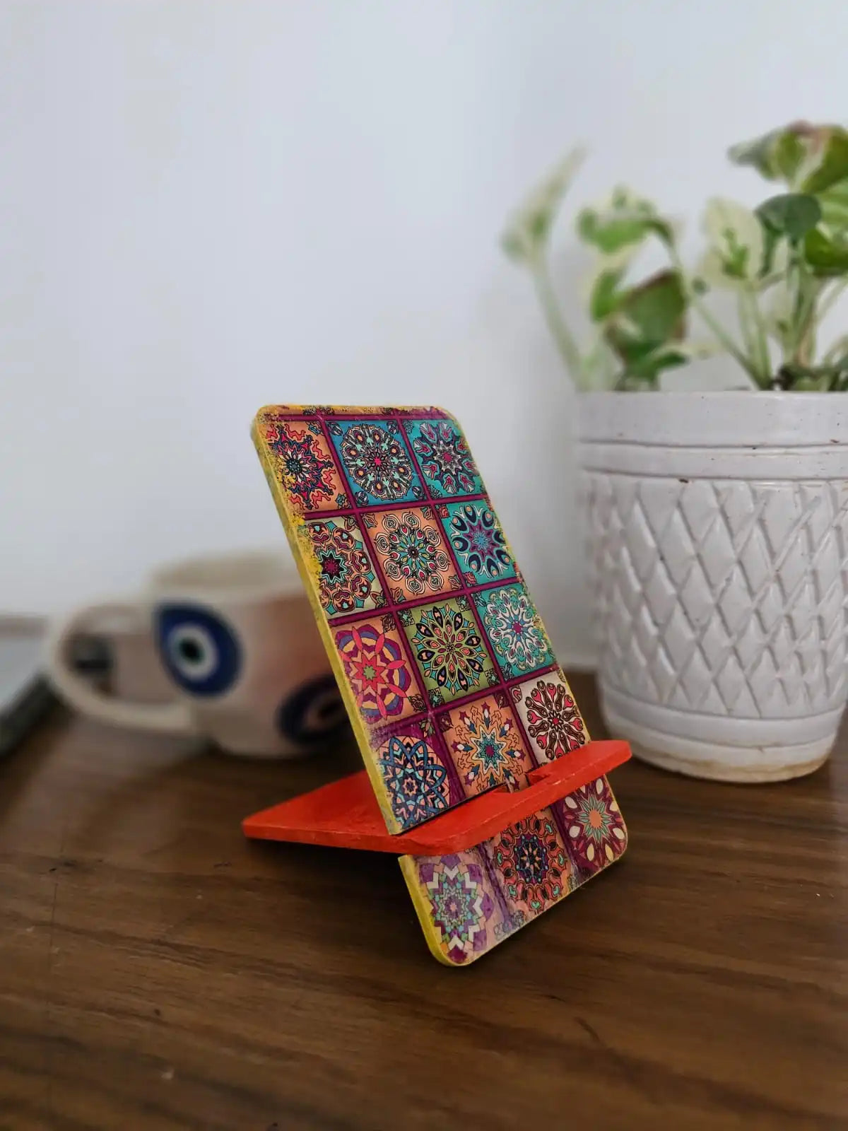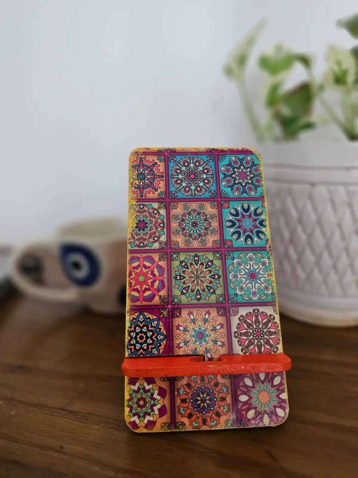 Bring warmth to your workspace with this Adorable decoupaged wooden phone stand. Practical and charming, it keeps your phone upright while adding a touch of comfort to your day.ย